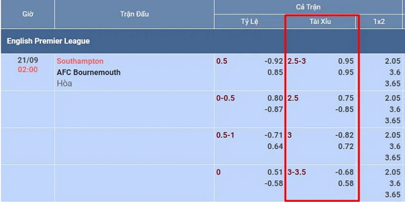 • Trong trường hợp tổng tỷ số của trận dừng lại ở con số 3, người đặt tài sẽ thua nửa tiền và người đặt xỉu ăn nửa tiền.