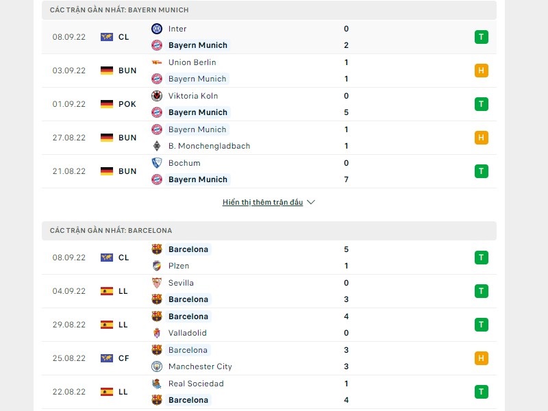 Phong độ trước trận của Bayern Munchen vs Barcelona