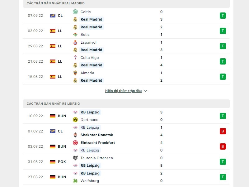 Phong độ trước trận của Real Madrid vs RB Leipzig